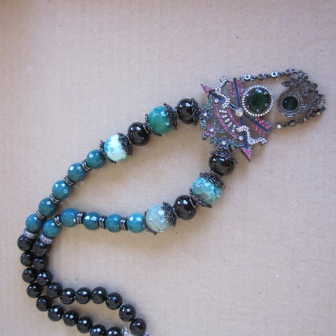 Riipus n. 9 x 7, ketjun pituus 44 cm.