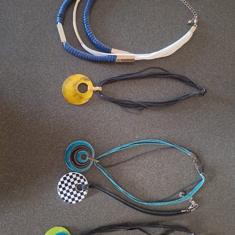 Näyttävä riipus koko n. 8 x 4,5, helmien pituus 46 cm.