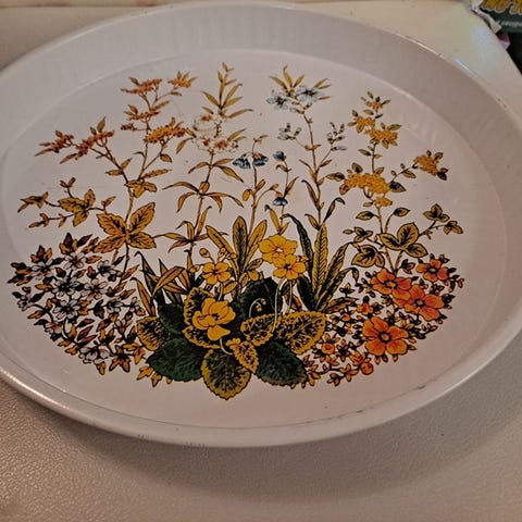 Figgio tarjoiluvati, jossa on sinivihreä kukkakuosi. Tarjoiluvati on suorakaiteen muotoinen ja valmistettu keraamisesta materiaalista.