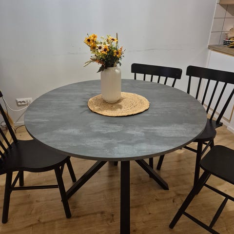 IKEAn Mariedamm ruokapöytä tummanharmaalla marmorikuviolla (ei enää myynnissä!). Pöytä on loistavassa kunnossa, en löydä mitään kolhuja tai naarmuja pinnasta tai jaloista.