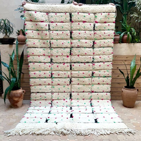Beldi yhdistelee kauniisti ajattomia perinteisiä elementtejä uudessa matossa. Berberinaisten rakkaudella käsinsolmima Marokon Atlas-vuoristossa solmima matto.