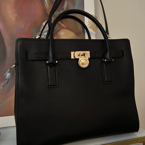 Michael Kors Hamilton large laukku. Koko noin k 33, l alhaalta 35, s 11 cm.