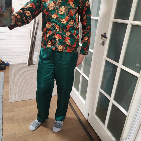 Uusi Sinsay:n yöpuku. Koko S, vastaa kokoaan. Leveälahkeiset housut ja lyhythihainen paita.