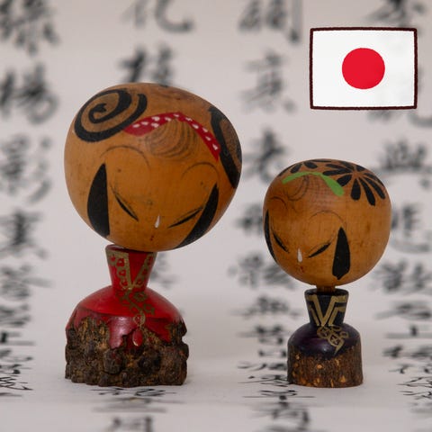 Kolme musta-valkoista Kokeshi-nukkea, joissa yksinkertainen ja perinteinen muotoilu. Nuket ovat pienikokoisia ja valmistettu painavasta materiaalista. Käytettävissä koriste-esineinä tai keräilyesineinä.