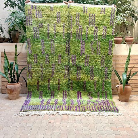 Ihastuttava marokkolainen käsinsolmittu matto. Matto on käyttämätön ja juuri pesty valmistuksen jälkeen. Tämän kun kerran lattialle asettaa, on siitä vaikea luopua. Boujaad on perinteinen berberien matonkutomisalue Marokossa. Perinteisten kuvioiden lisäksi sieltä tulee tänäpäivänä upeita moderneja mattoja, jotka ovat ainutlaatuisia värienkäytön ja käsityön taidonnäytteitä.