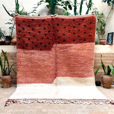 Valloittava käsinsolmittu marokkolainen matto. Tämä Marshmallow on yksi suosituimmista malleistamme. Tuuheaa ja paksua lampaanvillaa pehmeissä sävyissä. Matto on käyttämätön ja juuri pesty valmistuksen jälkeen. Tämän kun kerran lattialle asettaa, on siitä vaikea luopua. Marokkolaisten berberinaisten tekemä Atlas-vuoristossa kollektiivissa. Koko 360x250cm+ hapsut perinteen mukaan toisessa päässä, eli siellä minne matto päätetää.