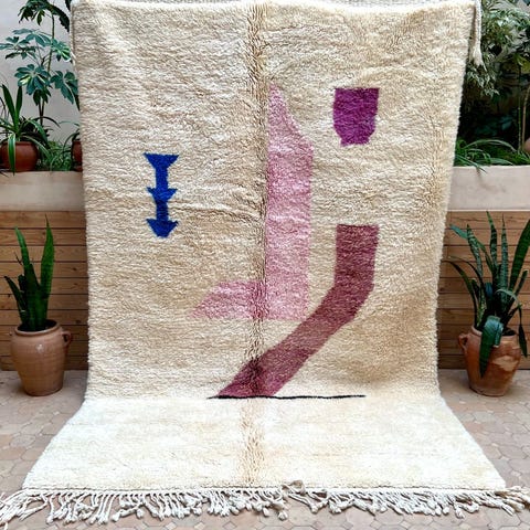 Upea käsinsolmittu marokkolainen Toikka matto. Atlas-vuorten paimentolaisten modernin designin taidonnäyte. Paksua käsinsolmittua laadukasta lampaanvillaa. Matto on käyttämätön ja juuri pesty valmistuksen jälkeen. Tästä saat kauniin maton lattialle tai upean seinätaideteoksen!