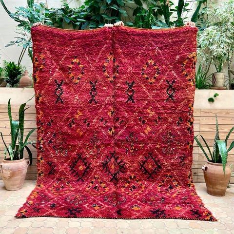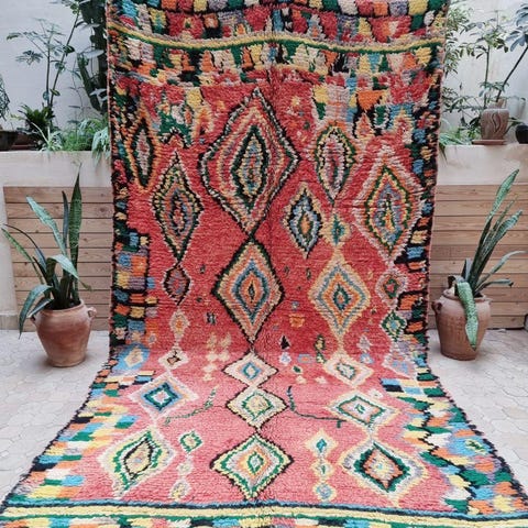 Vanha aito paimentolaismatto harmonisen maanläheisissä sävyissä. Boujaad matot tulevat Marokon Keski-Atlas vuoristosta. Alueen matot ovat tunnettuja ainutlaatuisista designeista ja väreistään. Vanhoissa Boujaad-matoissa solmut ovat symmetrisiä, joten kuviot näkyvät selkeästi maton pinnassa. Matot ovat myös helppoja ylläpidettäviä. Vanhat vintage-matot ovat tehty kylän omista lampaista perheen omiin tarpeisiin. Villa on värjätty luonnonväreillä esimerkiksi kasveilla, juurilla, yrteillä ja sienillä. Kuvioinnit ovat berberi-kieltä, joilla maton solmivat naiset ilmaisevat itseään. Koko noin 310x170+ cmhienot hapsut perinteen mukaan toisessa päässä, eli siellä minne matto päätetään.