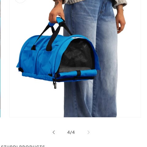 M-koko: P 43 x L 28 x K 27 cm - alle 7,2 kg lemmikeille. Koko sopii monen lentoyhtiön penkkien alle. Vetoketjullinen ovi edessä ja päällä. Irroitettava pehmuste sisällä. Alkuperäinen hinta 71,99€.