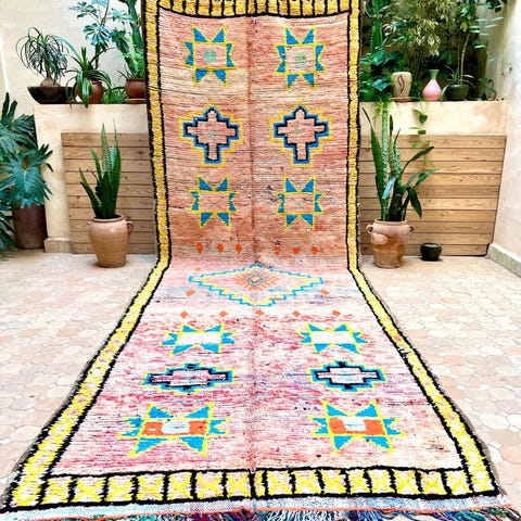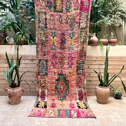 Vanha aito paimentolaismatto kauniissa sävyissä. Boujaad matot tulevat Marokon Keski-Atlas vuoristosta. Alueen matot ovat tunnettuja ainutlaatuisista designeista ja väreistään. Vanhoissa Boujaad-matoissa solmut ovat symmetrisiä, joten kuviot näkyvät selkeästi maton pinnassa. Matot ovat myös helppoja ylläpidettäviä. Vanhat vintage-matot ovat tehty kylän omista lampaista perheen omiin tarpeisiin. Villa on värjätty luonnonväreillä esimerkiksi kasveilla, juurilla, yrteillä ja sienillä. Kuvioinnit ovat berberi-kieltä, joilla maton solmivat naiset ilmaisevat itseään.