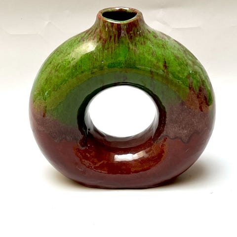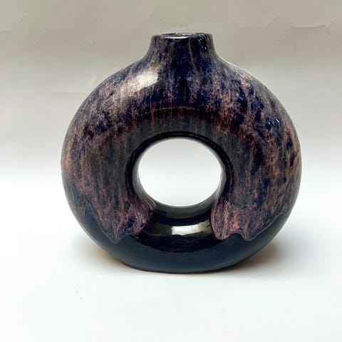 Tämä marokkolainen keraaminen Donut maljakko on kaunista perinteisestä käsityötä. Marokkolainen keramiikka yhdistelee rohkeita värejä, monipuolisia kuvioita ja ainutlaatuisia muotoja.