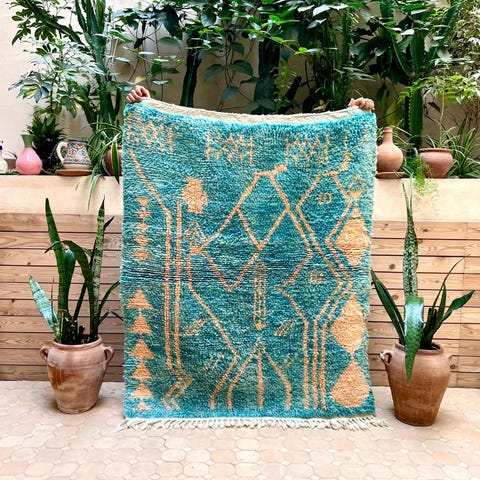 Ihastuttava marokkolainen käsinsolmittu matto. Matto on käyttämätön ja juuri pesty valmistuksen jälkeen. Tämän kun kerran lattialle asettaa, on siitä vaikea luopua. Boujaad on perinteinen berberien matonkutomisalue Marokossa. Perinteisten kuvioiden lisäksi sieltä tulee tänäpäivänä upeita moderneja mattoja, jotka ovat ainutlaatuisia värienkäytön ja käsityön taidonnäytteitä.