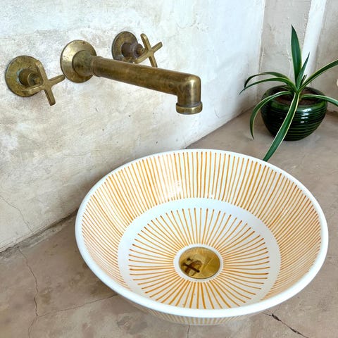 Tamegroute on kylä Saharan autiomaassa, jonka keraamiset tuotteet ovat tunnettuja upeasta vihreän ja keltaisen sävyistään. Sävy tulee erityisestä mineraalista kylän joen pohjassa. Joen savea polttamalla keraamiset esineet saavat pintaansa upean värin. Tämä kaunokainen tekee mistä tahansa keittiöstä tai kylpyhuoneesta ainutlaatuisen, on kyseessä sitten koti, mökki, ravintola, hotelli tai mikä tahansa muu tila. Voit valita käsienpesualtaaseen joko hopean tai kullan värisen venttiilin.