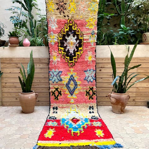 Vanha aito paimentolaismatto kauniissa sävyissä. Boujaad matot tulevat Marokon Keski-Atlas vuoristosta. Alueen matot ovat tunnettuja ainutlaatuisista designeista ja väreistään. Vanhoissa Boujaad-matoissa solmut ovat symmetrisiä, joten kuviot näkyvät selkeästi maton pinnassa. Matot ovat myös helppoja ylläpidettäviä. Vanhat vintage-matot ovat tehty kylän omista lampaista perheen omiin tarpeisiin. Villa on värjätty luonnonväreillä esimerkiksi kasveilla, juurilla, yrteillä ja sienillä. Kuvioinnit ovat berberi-kieltä, joilla maton solmivat naiset ilmaisevat itseään.