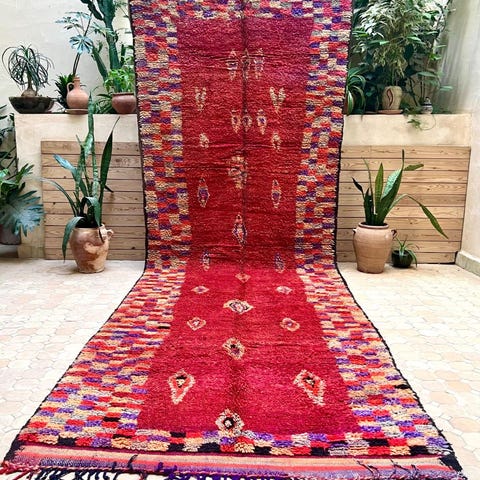 Vanha aito paimentolaismatto kauniissa sävyissä. Boujaad matot tulevat Marokon Keski-Atlas vuoristosta. Alueen matot ovat tunnettuja ainutlaatuisista designeista ja väreistään. Vanhoissa Boujaad-matoissa solmut ovat symmetrisiä, joten kuviot näkyvät selkeästi maton pinnassa. Matot ovat myös helppoja ylläpidettäviä. Vanhat vintage-matot ovat tehty kylän omista lampaista perheen omiin tarpeisiin. Villa on värjätty luonnonväreillä esimerkiksi kasveilla, juurilla, yrteillä ja sienillä. Kuvioinnit ovat berberi-kieltä, joilla maton solmivat naiset ilmaisevat itseään.
