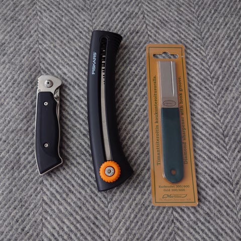 Fiskars SW69 saha on uusi ja sandvik on jonkin verran käytetty, mutta lkunnossa. Molemmat yht.45e+lähetys 8.80e.