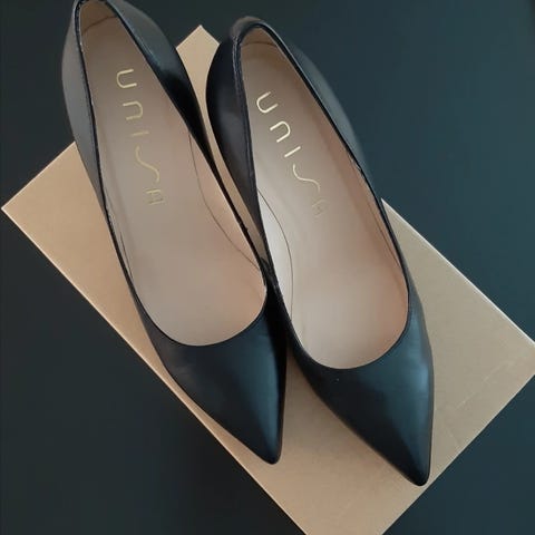 Myydään pari kertaa käytössä olleet mustat Unisan nahkaiset korkokengät, koko 38,5. Ihan uudenveroiset. Ostettu uutena kivijalkaliikkeestä (ovh. 121€), mutta jäivät pieneksi, kun jalan malli muuttunut, ja jäivät käyttämättä. Tyylikkäät ja aina ajattomat korkkarit. Unisa istuu tosi hyvin jalkaan ja on helppo kävellä pitkiäkin aikoja. Saa tulla sovittamaan. Tästä ihanat ja tyylikkäät kengät vaikkapa vanhojen tansseihin. Helpot ja hyvät kengät tanssia. Hinta 45e