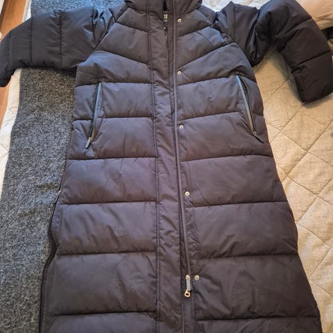 Uusi Rukan Villama pitkä talvitakki, itselle kuitenkin harmittavasti liian suuri, vastaa paremminkin kokoa 44. Takin normaali hinta on 299 €.