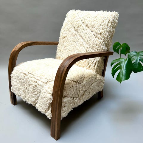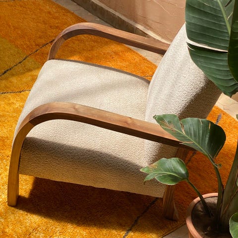 Heritage nojatuolissamme on ajaton, tyylikäs muotoilu ja erittäin vankka runko. Erinomainen istua. Tämä yksilö on verhoiltu marokkolaisella valkealla lampaanvillalla. Vaikka muotoilu on alunperin marokkolaista, sillä on paljon muotokieleltään yhteistä myös Artek ja Alvar Aalto kalusteiden kanssa.Tuoila voi tilata myös laajasti erilaisilla päällysteillä ja erivärisellä puun käsittelyllä.