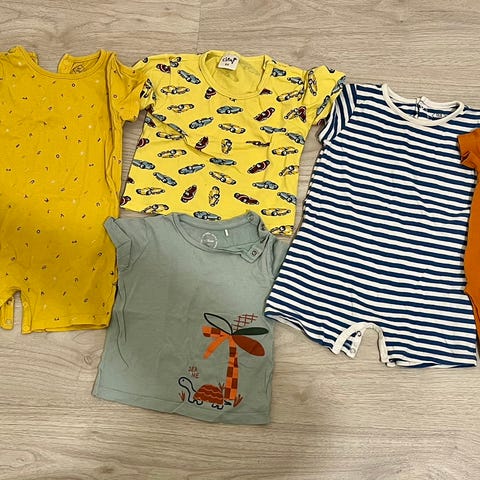 Kesävaatteita koossa 80cm, tarkemmat kuvaukset kts kuvat ja kuvatekstit. Eri merkkejä mm. Newbie, Gugguu ja Metsola.