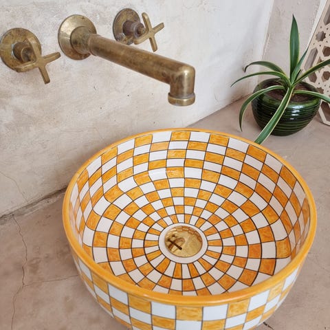 Viimeistä silausta myöten käsintehty keraaminen allas. Tämä kaunokainen tekee mistä tahansa keittiöstä tai kylpyhuoneesta ainutlaatuisen, on kyseessä sitten koti, mökki, ravintola, hotelli tai mikä tahansa muu tila. Voit valita käsienpesualtaaseen joko hopean tai kullan värisen venttiilin.