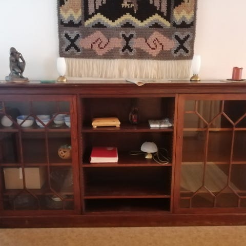Myydään vanha senkki/hylly. Mitat: k:75cm, l:160,s:37cm. Hylyn takalevyyn tehty joskus reikä johdoille. Nouto, Hamina, omat kantajat.