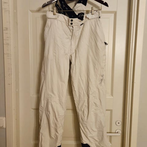 Naisten toppa/lasketteluhousut koko 36. Ollut käytössä noin 5 kertaa. Henkselit saa halutessaan pois ja vyötäröllä myös tarrakiristys.