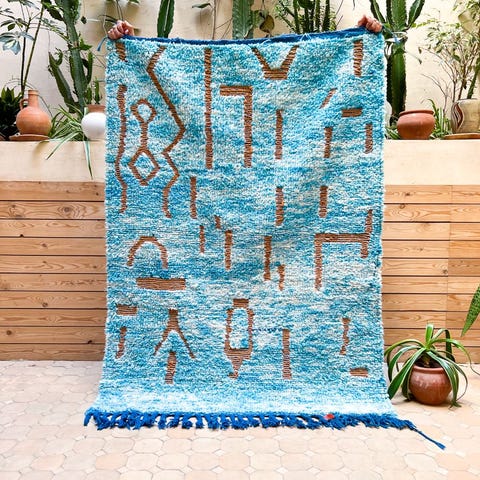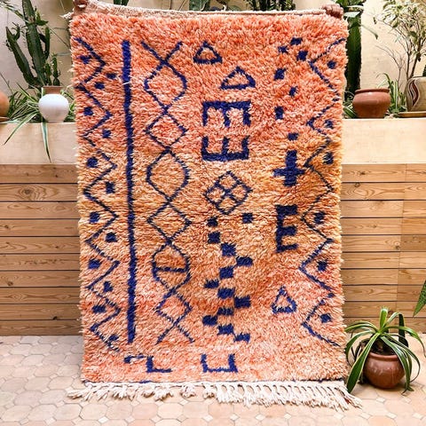 Ihastuttava marokkolainen käsinsolmittu matto. Matto on käyttämätön ja juuri pesty valmistuksen jälkeen. Tämän kun kerran lattialle asettaa, on siitä vaikea luopua. Boujaad on perinteinen berberien matonkutomisalue Marokossa. Perinteisten kuvioiden lisäksi sieltä tulee tänäpäivänä upeita moderneja mattoja, jotka ovat ainutlaatuisia värienkäytön ja käsityön taidonnäytteitä.