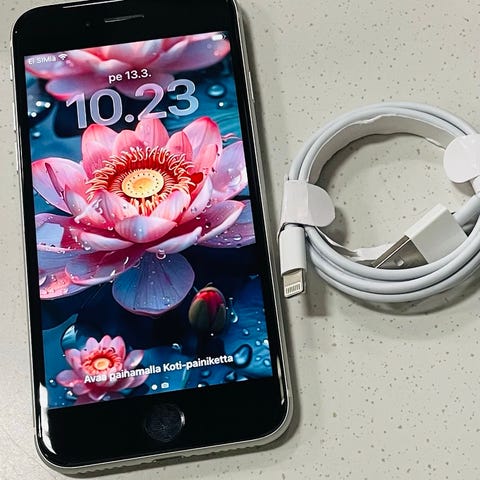 Apple iPhone SE (2-3 gen) -älypuhelin, jossa on 32 gigatavua tallennustilaa. Täysin ehjä, alkuperäispakkauksessa. Mukana kuulokkeet ja latausjohto