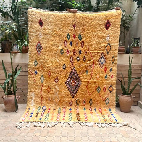 Tässä säväyttävässä käsinsolmitussa Metsäksi nimetyssä design-matossamme on elävän sävyinen oransi pohja ja värikkäät symboliset yksityiskohdat. Käsisolmittu lampaanvillamatto, joka taatusti tuo sielun huoneeseen. Berberien taideteos Marokosta, solmittu Khemissetin alueella Atlas-vuoristossa. Matto on pesty solmimisen jälkeen. Niin pehmeä, että tällä voi nukkua vaikka päikkärit! Koko noin 300x200cm+ tuuheat hapsut perinteen mukaan toisessa päässä, eli siellä minne matto päätetään.