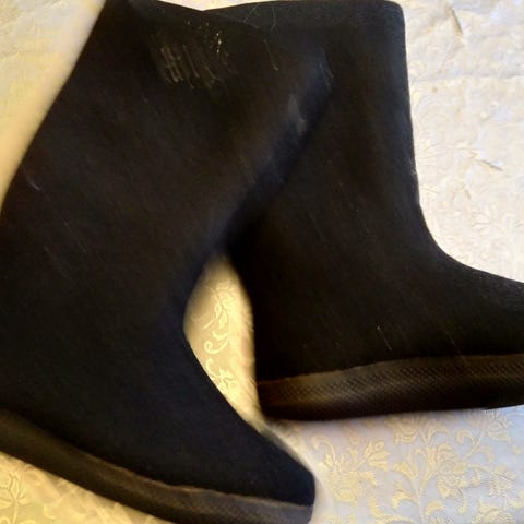 Vähän käytetyt miesten Lahtiset huopatossut. Koko 46. Kumipohja kulunut kantapäistä ja pohjan liimaus hieman auki toisesta kannasta.
