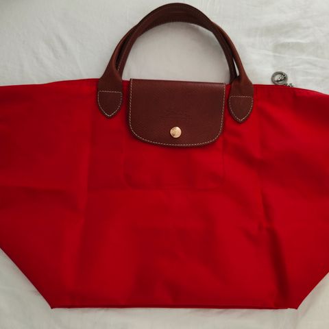 Siistikuntoinen Longchamp punainen isompi laukku n. L48xK30cm sisällä pientä tummaa jälkeä. Ja kuvassa pieni musta tahra ulkopuolella.
