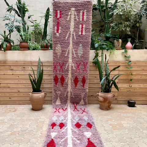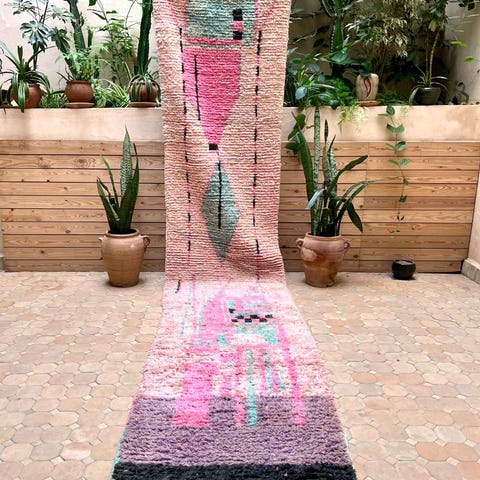 Ihastuttava marokkolainen käsinsolmittu käytävämattomatto. Pehmeää värikästä lampaanvillaa. Matto on käyttämätön ja juuri pesty valmistuksen jälkeen. Tämän kun kerran lattialle asettaa, on siitä vaikea luopua. Boujaad on perinteinen berberien matonkutomisalue Marokossa. Perinteisten kuvioiden lisäksi sieltä tulee tänäpäivänä upeita moderneja mattoja, jotka ovat ainutlaatuisia värienkäytön ja käsityön taidonnäytteitä. Matto sopii erinomaisesti esimerkiksi eteiseen, parvekkeelle tai keittiöön.