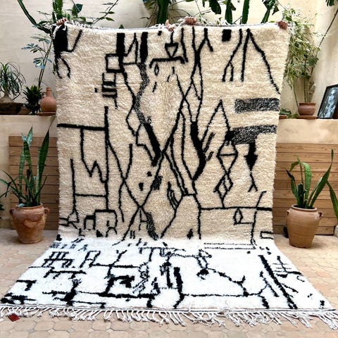 Ihana marokkolainen paimentolaismatto. Matto on kotoisin Marokon Azilal-kylästä. Mielenkiintoisesti Azilal-matot ovat löydetty vasta viime vuosikymmeninä. Niissä on usein valkean pohjan lisäksi ihastuttavia värejä symbolisissa yksityiskohdussa. Matot ovat alunperin käsinsolmittu omaan kotiin. Azilal-matot valmistetaan lampaanvillasta, johon on joskus sekoitettu puuvillaa yksityiskohtia varten.