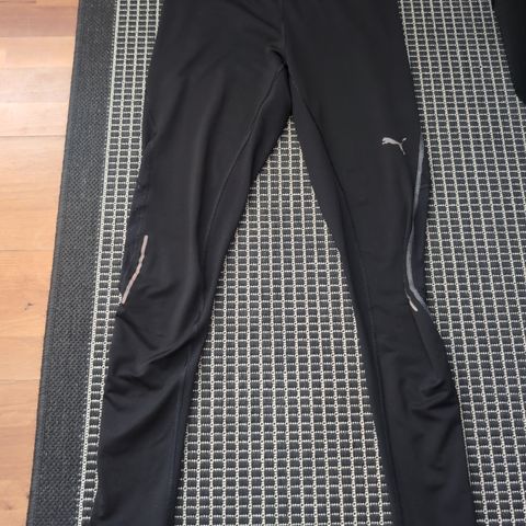Puma miesten juoksuhousut, koko M. Housut ovat mustat ja soveltuvat juoksuun.