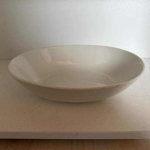 Arabia kulho, valmistettu valkoisesta posliinista. Kulho on muodoltaan soikea ja sopii monenlaiseen käyttöön keittiössä tai tarjoilussa. Tuotteen pohjassa on valmistusmerkintä, joka osoittaa sen olevan valmistettu Suomessa.