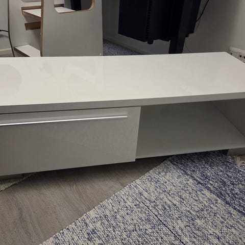Myynnissä muuton tieltö tammesta tehty TV-taso.