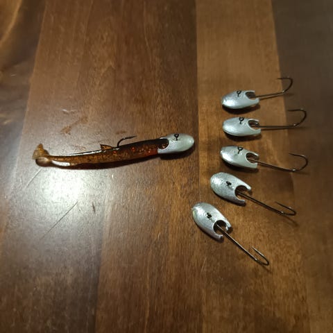Myydään kirjasinmetallista valetut pilkki jigipäät.