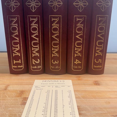 Myydään hyvässä ja siistissä kunnossa oleva Novum kirjasarja. Ainoastaan kahden kirja paperikansissa repeämät. Ei merkintöjä.