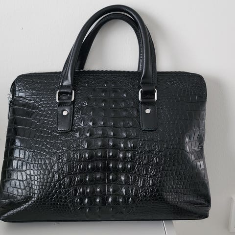 Pieni tekonahkainen musta käsilaukku, krokotiilikuvio