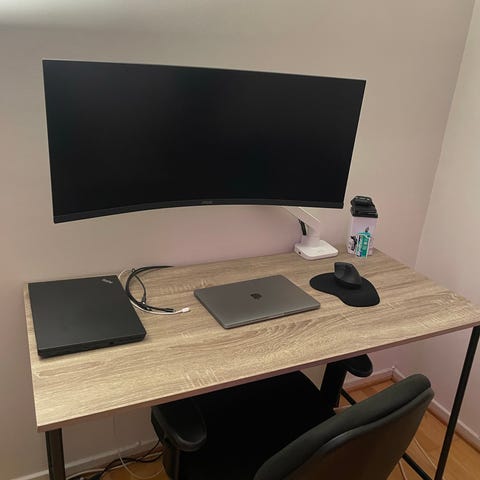 Käytössä ollut työpöytä, käytön jälkiä näkyy.