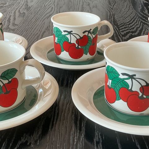 Arabia Kirsikka kahvikupit ja asetit 8 kpl