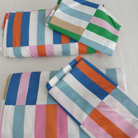 Paristi käytetyt pussilakanasetit, 150×200, tyynyliinat 50×60. Väri keltainen, ei mitään kuviointia.