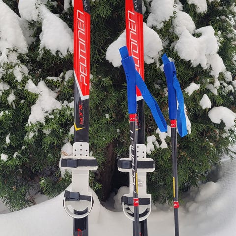 Myydään Järvinen Kids lasten suksipaketti, sukset (pituus 100cm) ja sauvat (pituus 80cm).