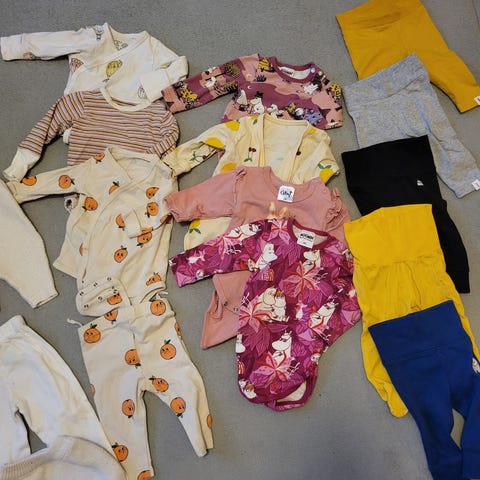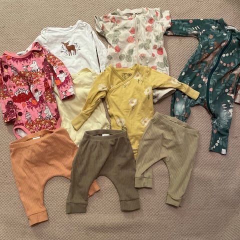 Vauvojen vaatepakkaus koot 56-68.