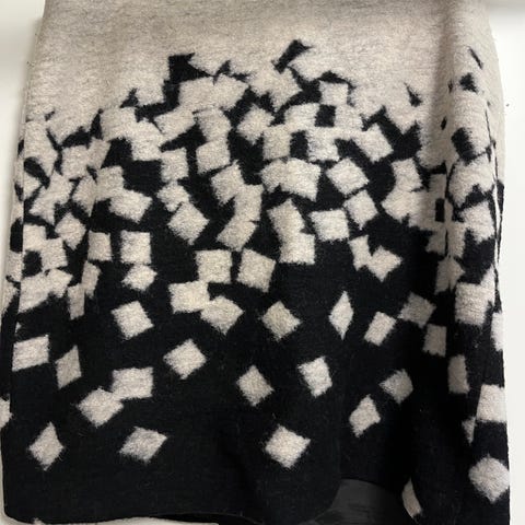Väri on musta/antrasiitti., sillä kudotussa kankaassa taustalla käytetty lanka on vaaleaa.
