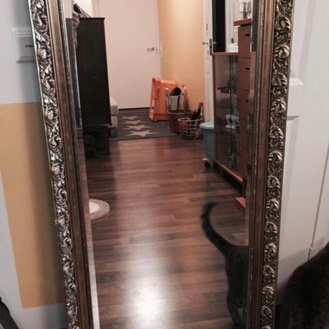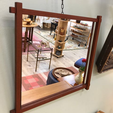 Kuvan vanha - 70-luvun teak kehyksinen Finnmirrorin iso seinä peili. 127x50cm.Hyvä ripustus. Lohjalla.
