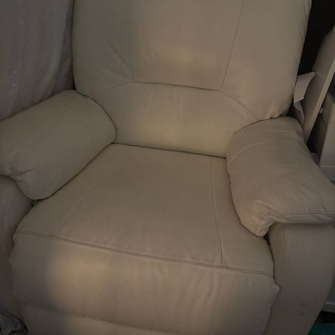 Tästä sähköllä toimiva nojatuoli nahkalla hyvässä kunnossa!