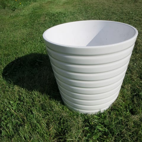 Jalallinen punottu ruukku. Jalat metalliset. Halkaisija 20 cm ja korkeus 20cm.