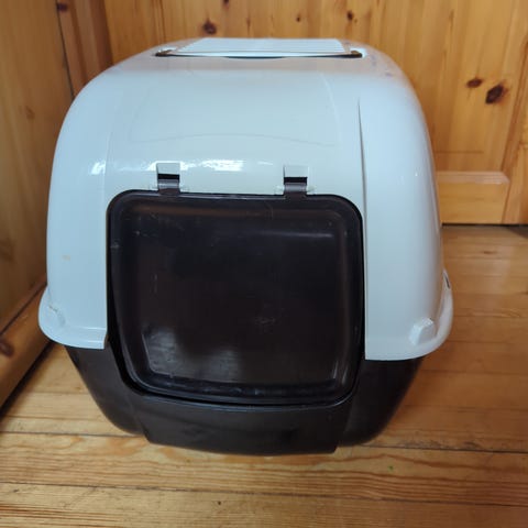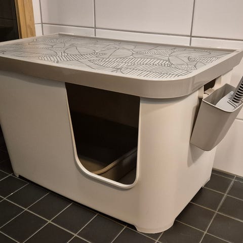 Myydään kissanvessa kannella, lapio ja silikoninen matto.